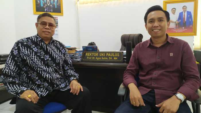 Rektor UKI Paulus Makassar, Prof Dr Agus Salim SH, MH bersama Wakil Dekan Bidang Kemahasiswaan Fakultas Ekonomi dan Bisnis UKI Paulus, Arnold Sau, SE, M.Ak, Ak, ACPA